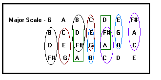 7th chord in a major scale have 3 of the 4 notes in them in common. Look at the diagram below.